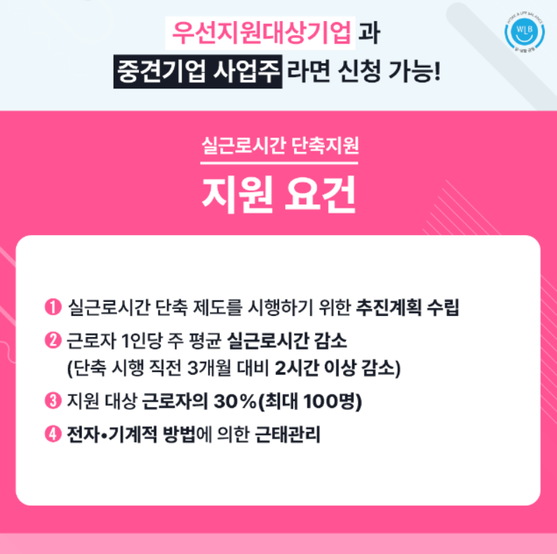 근로자의 근무시간을 줄이고도 기업의 부담을 최소화할 수 있도록 정부가 지원금을 제공하는 제도입니다.